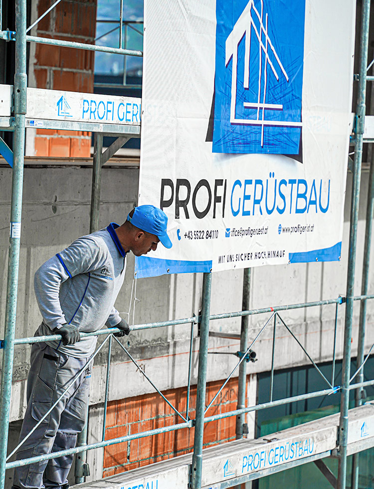 Ein professionell gestelltes Fassadengerüst bietet den Arbeitern der verschiedensten Gewerke gute Arbeitsmöglichkeiten. Nicht zu dicht an der Fassade, aber auch nicht zu weit entfernt, die Arbeitsbereiche in der richtigen Höhe. Es gibt viele konkurrierende Wünsche zu vereinen.